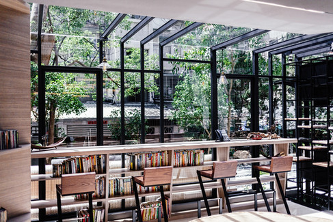 客人。不同於以往傳統的辦公空間,在設計中監利用玻璃隔間打造光線通透的閱讀區,讓外頭綠意盎然的景致得以延伸至此,待在室內便可以感受到四季更迭的表情,達到身心與自然的親密連結。